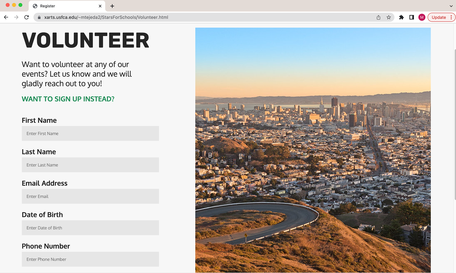 Volunteer page with form